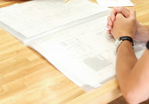まずは、建築地を調査させていただき、お客様の家づくりについてのヒアリングを行います。ヒアリングシートにご記入いただいた上で、家族のことやペットのことなど、家づくりのこだわりをお聞かせください。